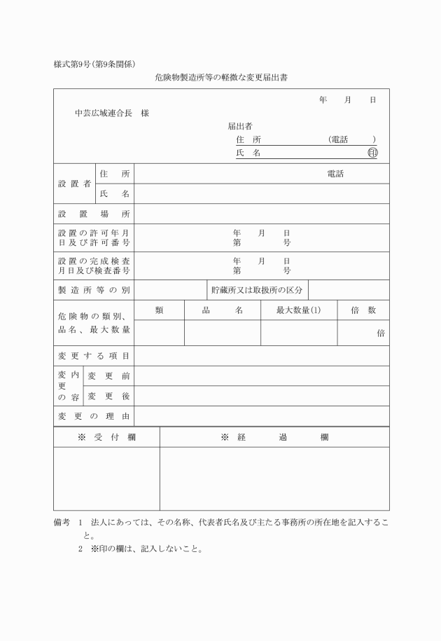 (3) 製造所等において法第11条第1項の規定による変更許可を必要としない程度の軽微な変更又は補修をしようとするとき(様式第9号)。