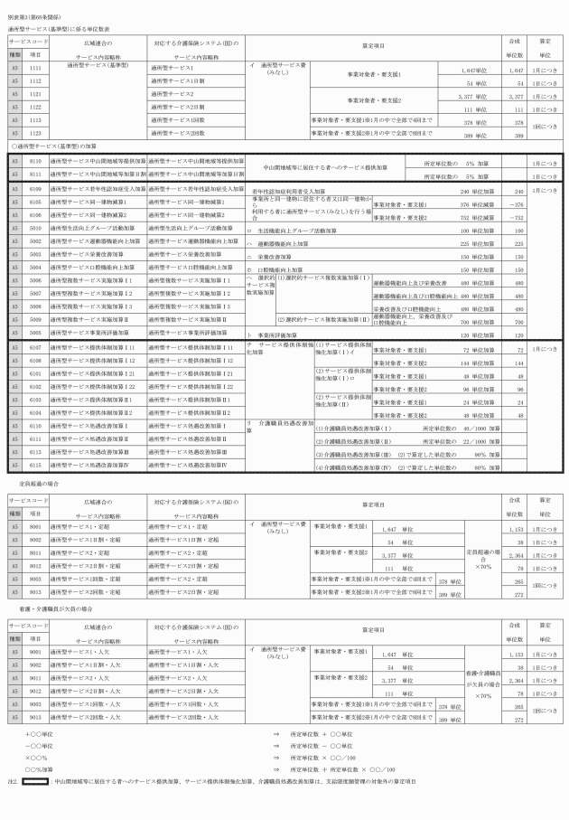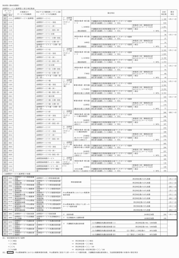 第66条 訪問型サービス(基準型)に要する費用の額は、別表第1に係る単位数表により算定するものとする。